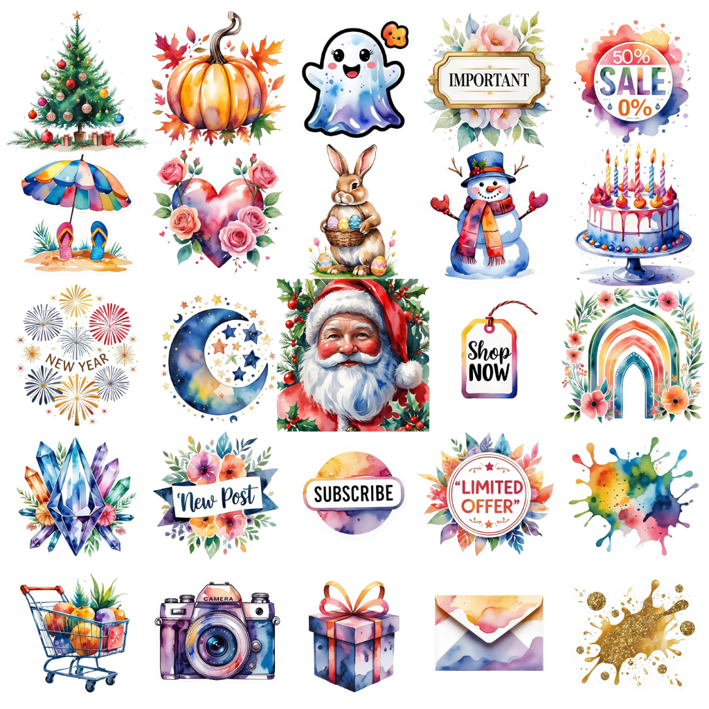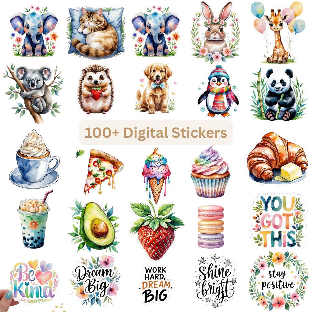 Add a touch of fun and creativity to your daily life with these beautiful digital stickers! Perfect for digital planners, journals, scrapbooks, or even decorating your photos and projects.