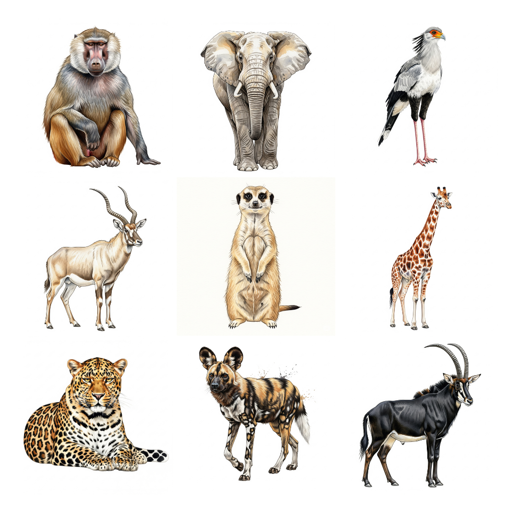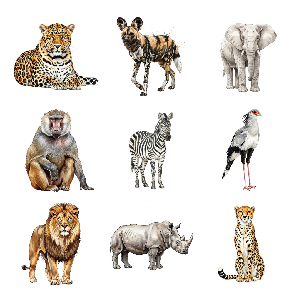 Perfect for designers, crafters, and small business owners, this Safari Watercolor Clipart will help you create stunning, nature-inspired designs with ease.